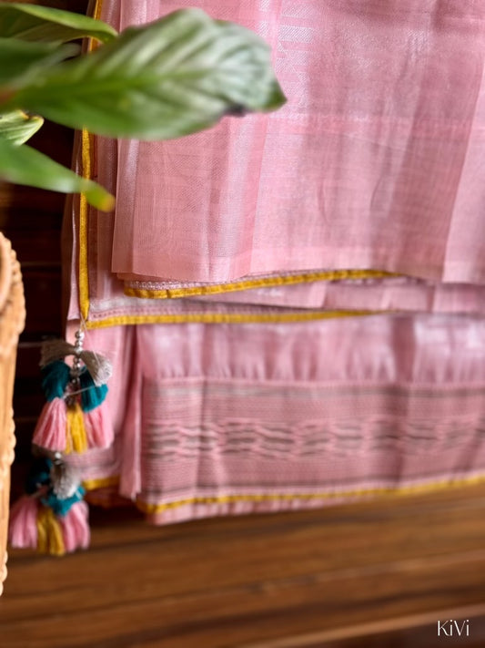 Pastel Pink Organza Saree with Vibrant Yellow Blouse